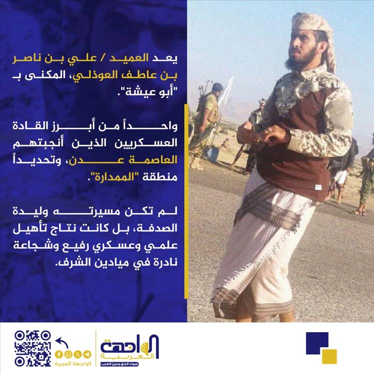 يعد العميد علي بن ناصر بن عاطف العوذلي، المكنى بـ "أبو عيشة"، واحداً من أبرز القادة العسكريين الذين أنجبتهم العاصمة عدن، وتحديداً منطقة "الممدارة".