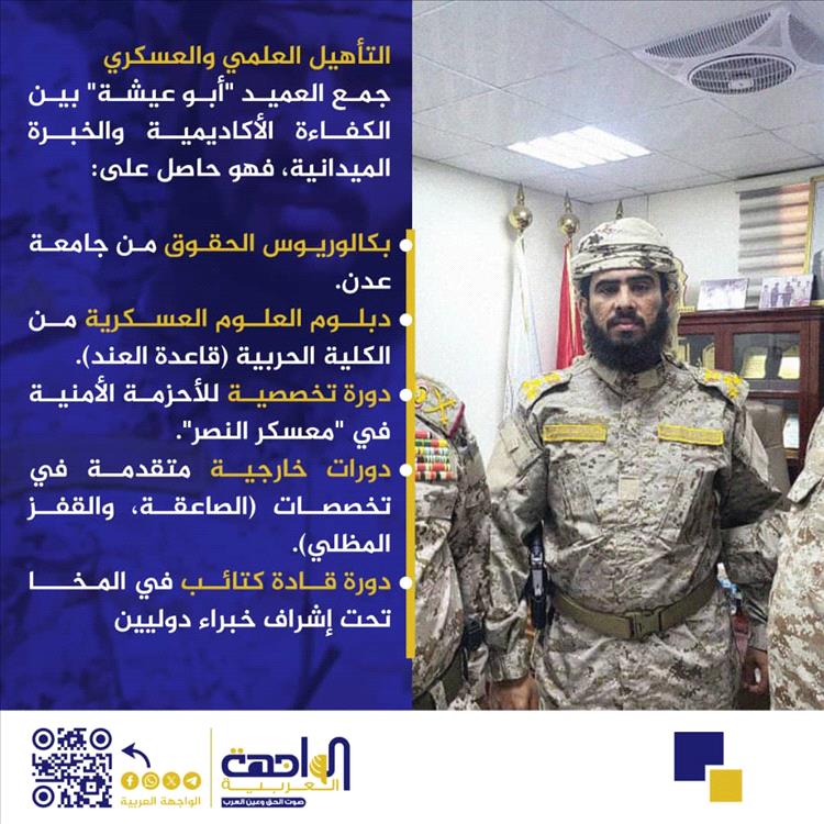 ختاماً، فإن العميد "أبو عيشة" يمثل النموذج المشرف للقائد العسكري الذي يجمع بين العلم، والنزاهة، والعقيدة السوية، والتضحية المطلقة من أجل الوطن.