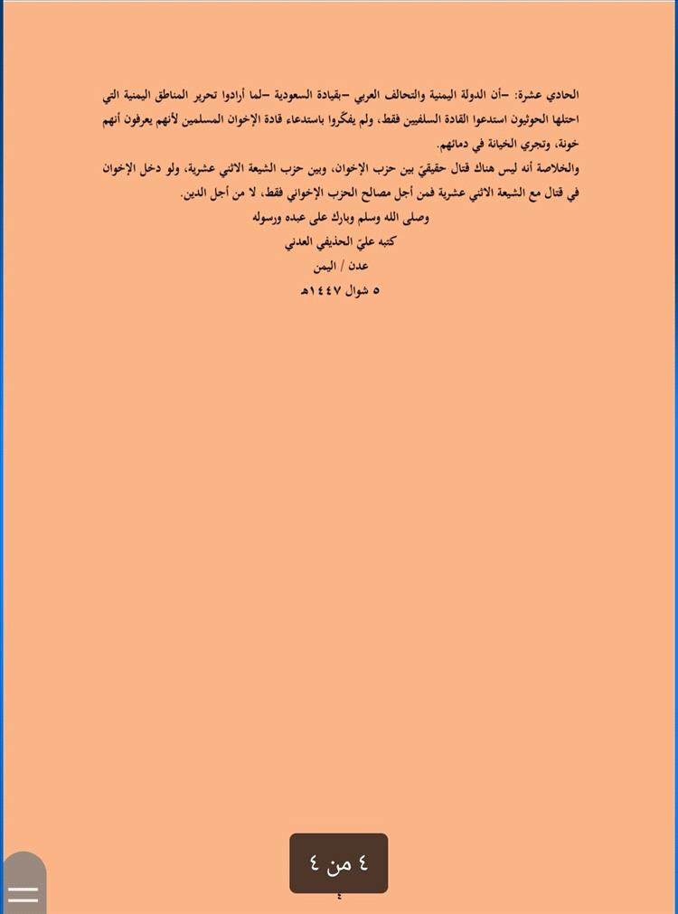 الشيخ علي الحذيفي يفند "مزاعم" حزب الإصلاح حول تحرير عدن