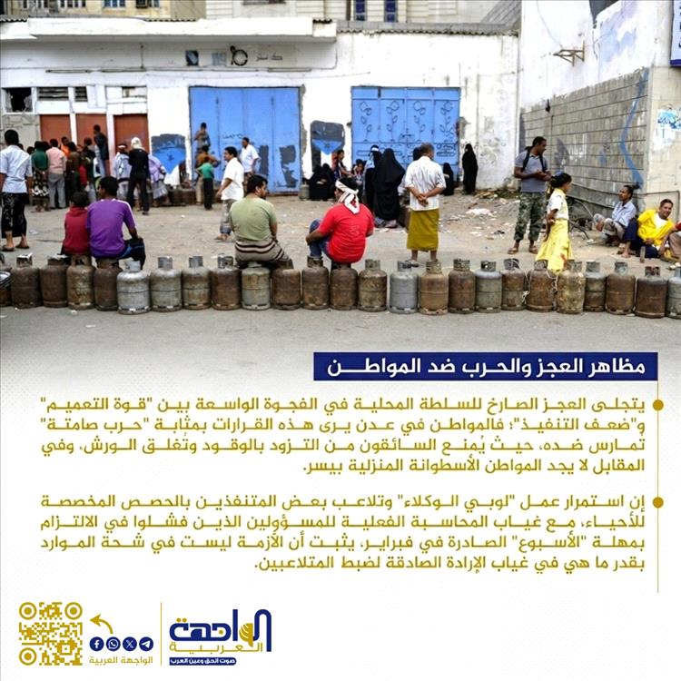 يتجلى العجز الصارخ للسلطة المحلية في الفجوة الواسعة بين "قوة التعميم" و"ضعف التنفيذ"؛ فالمواطن في عدن يرى هذه القرارات بمثابة "حرب صامتة" تُمارس ضده، حيث يُمنع السائقون من التزود بالوقود وتُغلق الورش، وفي المقابل لا يجد المواطن الأسطوانة المنزلية بيسر. إن استمرار عمل "لوبي الوكلاء" وتلاعب بعض المتنفذين بالحصص المخصصة للأحياء، مع غياب المحاسبة الفعلية للمسؤولين الذين فشلوا في الالتزام بمهلة "الأسبوع" الصادرة في فبراير، يثبت أن الأزمة ليست في شحة الموارد بقدر ما هي في غياب الإرادة الصادقة لضبط المتلاعبين.