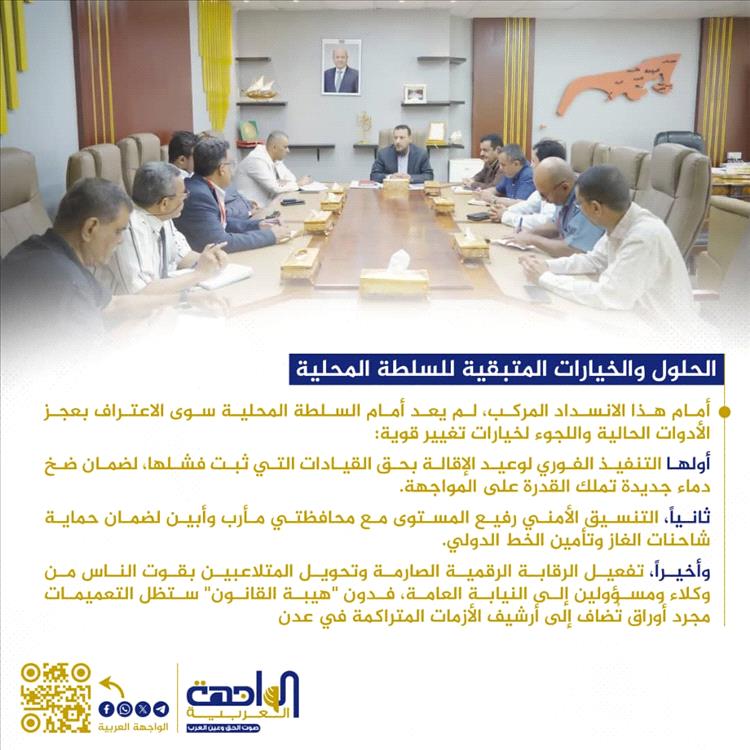 أمام هذا الانسداد المركب، لم يعد أمام السلطة المحلية سوى الاعتراف بعجز الأدوات الحالية واللجوء لخيارات تغيير قوية: أولها التنفيذ الفوري لوعيد الإقالة بحق القيادات التي ثبت فشلها، لضمان ضخ دماء جديدة تملك القدرة على المواجهة. ثانياً، التنسيق الأمني رفيع المستوى مع محافظتي مأرب وأبين لضمان حماية شاحنات الغاز وتأمين الخط الدولي. وأخيراً، تفعيل الرقابة الرقمية الصارمة وتحويل المتلاعبين بقوت الناس من وكلاء ومسؤولين إلى النيابة العامة، فدون "هيبة القانون" ستظل التعميمات مجرد أوراق تُضاف إلى أرشيف الأزمات المتراكمة في عدن.